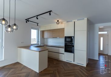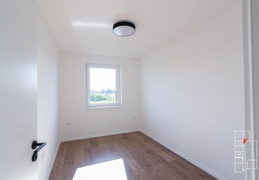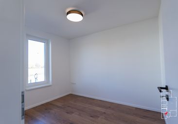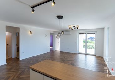 A kamra áthelyezésével jelentősen megnőtt a közösségi tér: a 43,98 m²-es amerikai konyhás nappali tágas, világos és jól bútorozható. Itt a főzés, az étkezés és a pihenés természetes egységet alkot, miközben a megnövelt alapterület még kényelmesebb térhasználatot biztosít a mindennapokban és a családi összejöveteleken egyaránt.