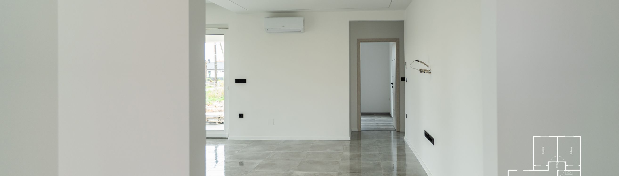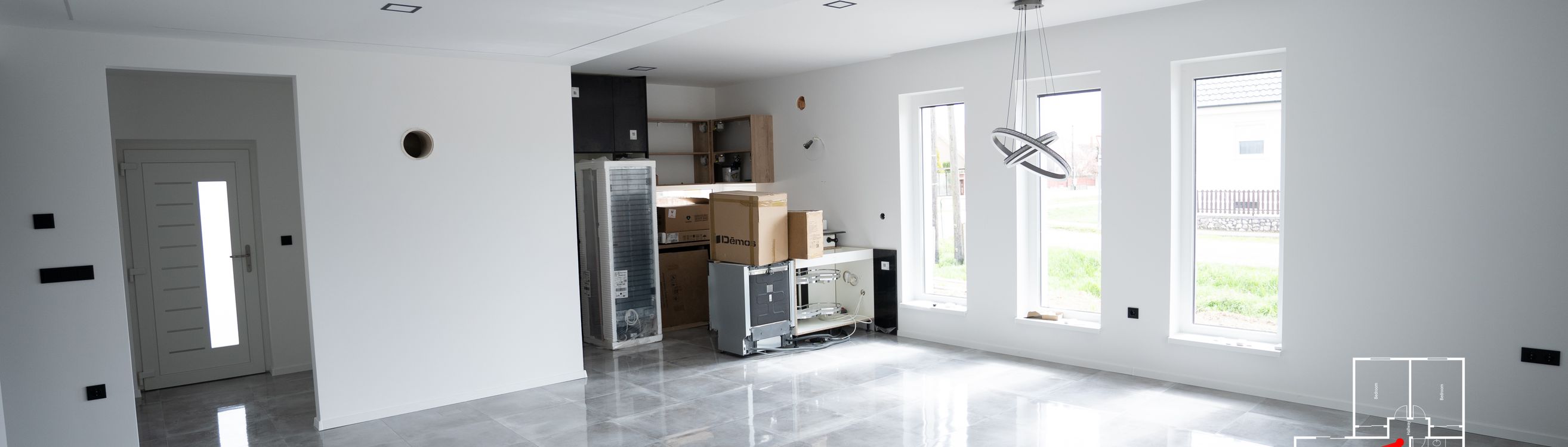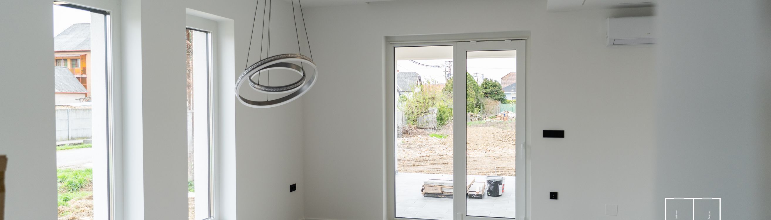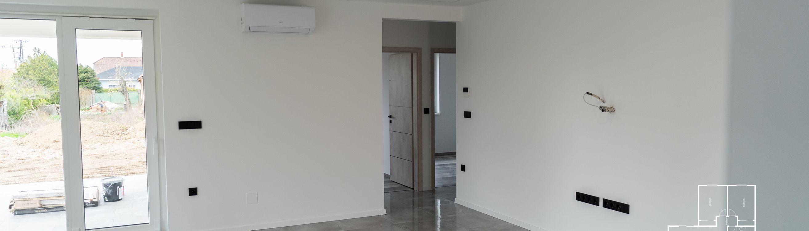 - Belső vakolás és festés: Két réteg fehér festéssel.