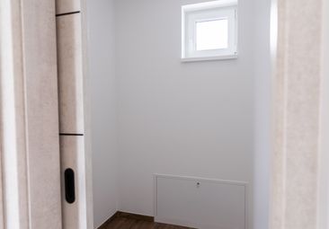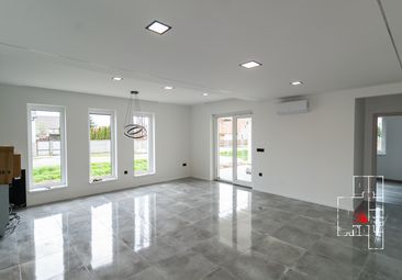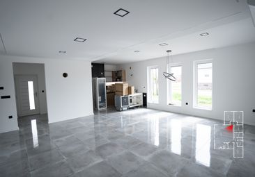 - Belső padozat és szigetelés: Talajnedvesség elleni szigetelés, 13 cm vastag hőszigetelés, esztrich betonozás.